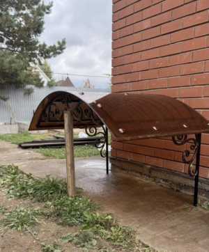 Продается козырек. 164/92/65см. Между стойками 128см. Изготовление по Вашим размерам. Проф труба 20-20мм. Поликарбонат 8мм. Покрыт акриловой черной краской, патиной. Смотреть и забирать с мкр Кузнечный ( район зауральной рощи). Возможно доставка по городу 500 руб) Установка по договоренности.